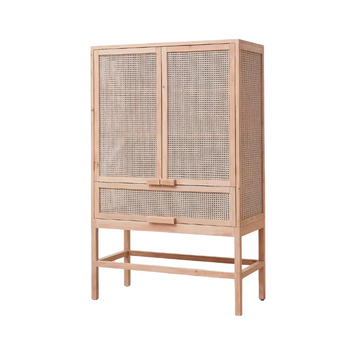 Gabinete de mimbre de teca maciza de diseño nórdico, aparador de un cajón de dos puertas, Panel de caña tejida, almacenamiento de madera ligera para el hogar y la sala de estar
