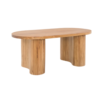Mesa de centro de madera maciza, parte superior ovalada moderna, losa gruesa, acabado Natural, estilo contemporáneo, muebles de sala de estar, pieza de acento única